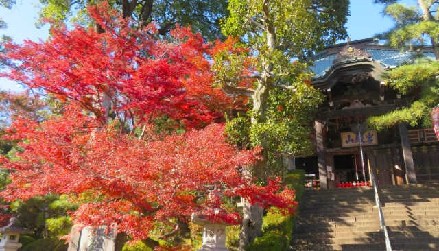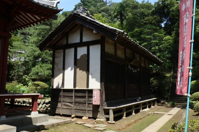 本堂は寛文元年(1661)に秀慶の発願で造営された建物で、木造平屋建て、寄棟、銅瓦棒葺き、平入、正面1間軒唐破風向拝付、貴重な事から埼玉県指定文化財に指定されています。